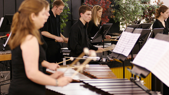 We provide marimbas, vibes, timpani, and a concert snare drum. You must bring your own sticks and mallets, and a copy of your audition material.