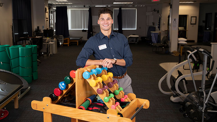 Physical therapy student posing in the Physical Therapy Clinic.